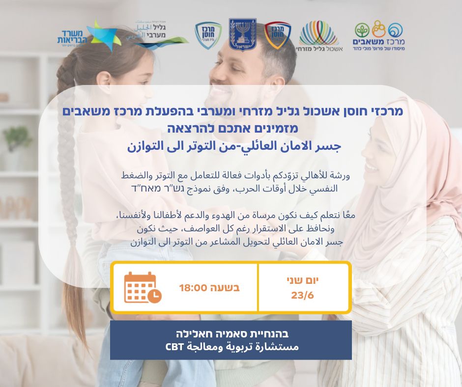 תושבי רשויות אשכול גליל מערבי, במקרה של לחץ וחרדה, מוזמנים להתקשר לקו הסיוע