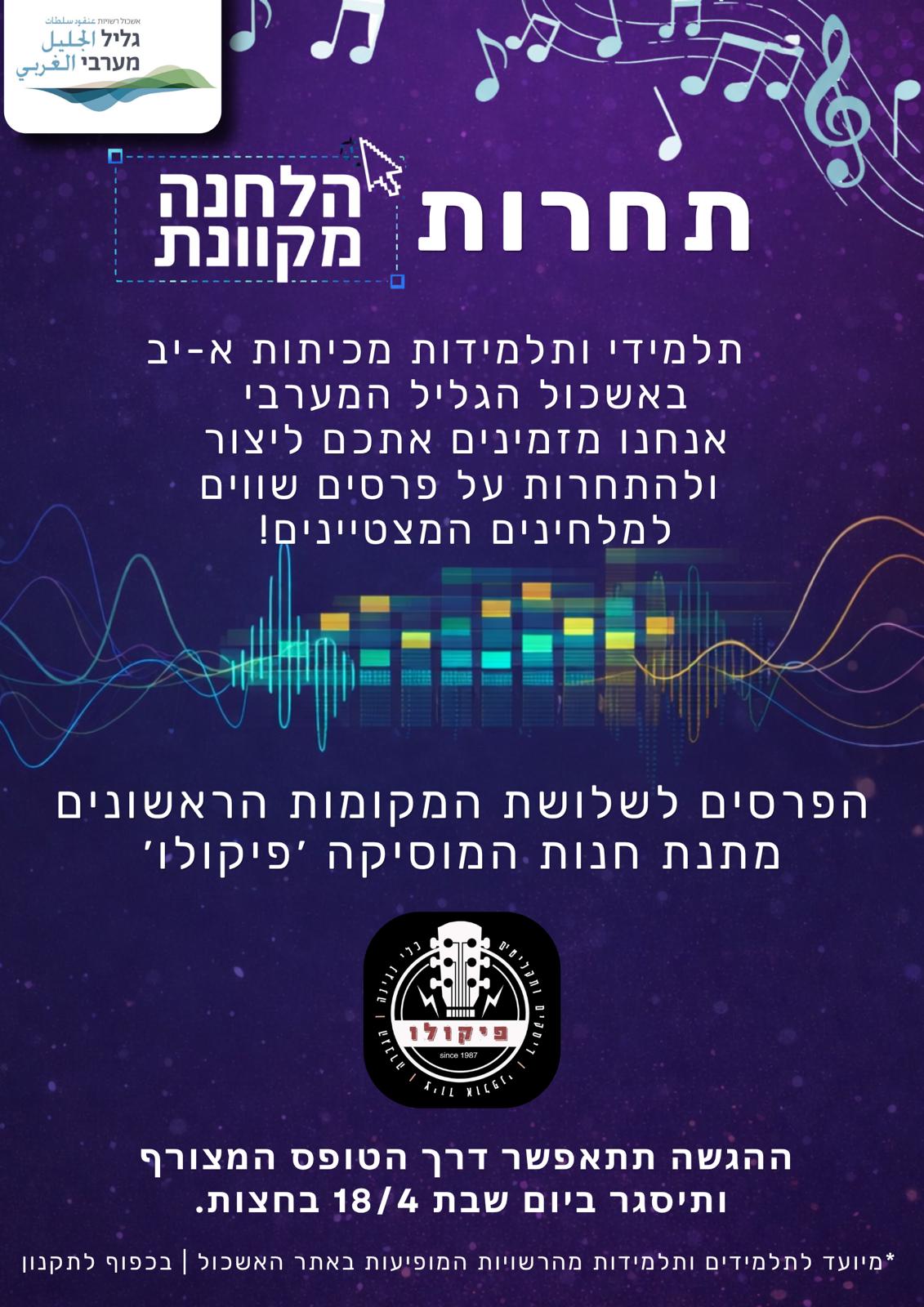 📣תחרות ההלחנה המקוונת של אשכול גליל מערבי בשיתוף חנות "פיקולו" כלי נגינה בנהריה יוצאת לדרך! 🎉